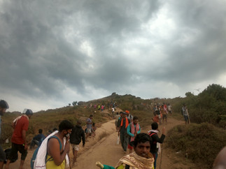 After spending a few minutes at the pond, we headed towards the Seventh Hill. We enjoyed some herbal soup and took a short break at a small stall. At 10:30 pm, we began our ascent up the steep section of the Seventh Hill. This hill tests both your physical and mental endurance before reaching the cave temple at the summit. The trail is rough and very dusty.